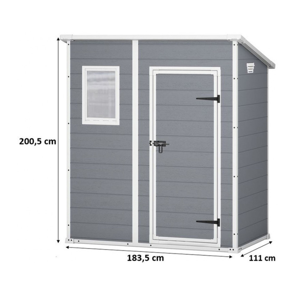 Caractéristiques de l’abri de jardin Keter Mano r 6 × 4, 183,5 × 111 × 200,5 cm, gris / blanc (230394)