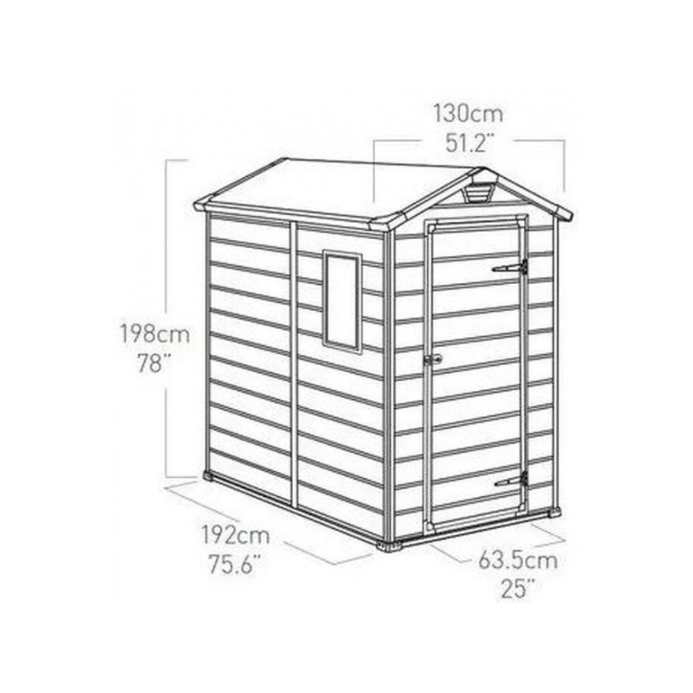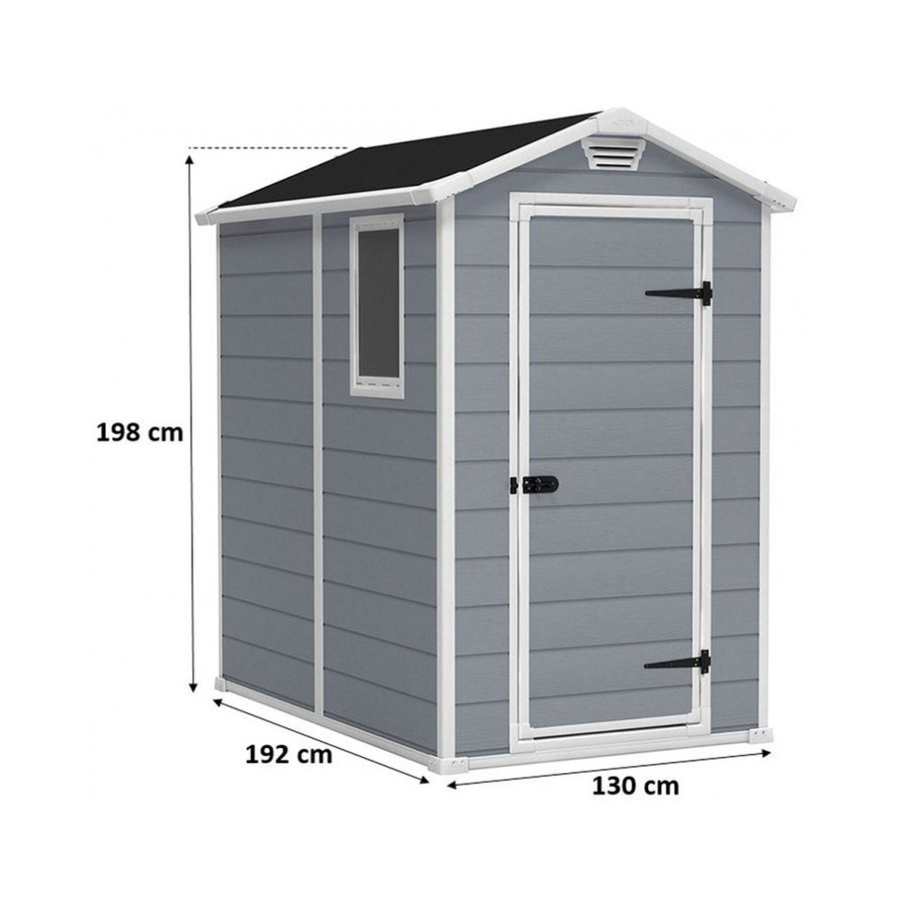 Caractéristiques de l’abri de jardin Keter Manor 4 × 6, 198 × 130 × 192 cm, gris / blanc (230447)