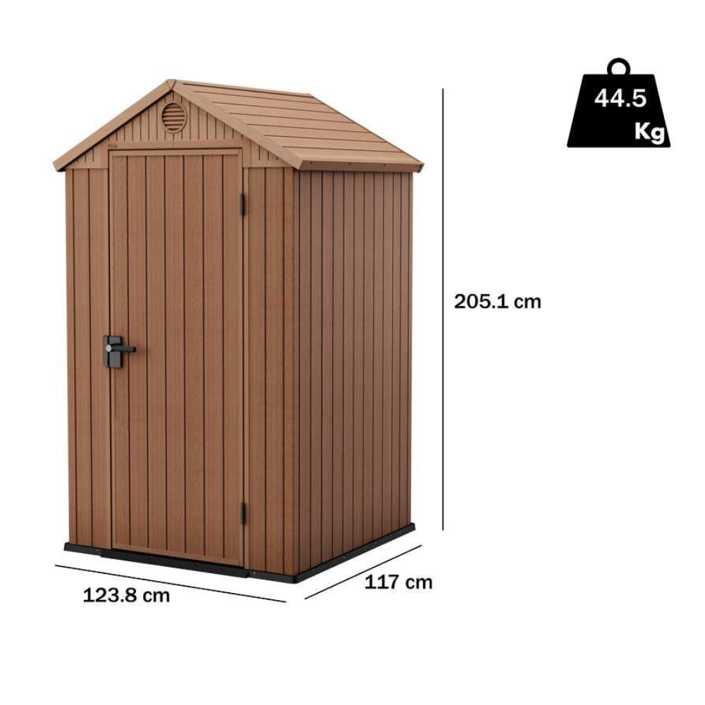 Keter Abri de jardin Keter Darwin 123,8x117x205,1 cm en résine PVC marron, porte simple, toit double pente (259006)