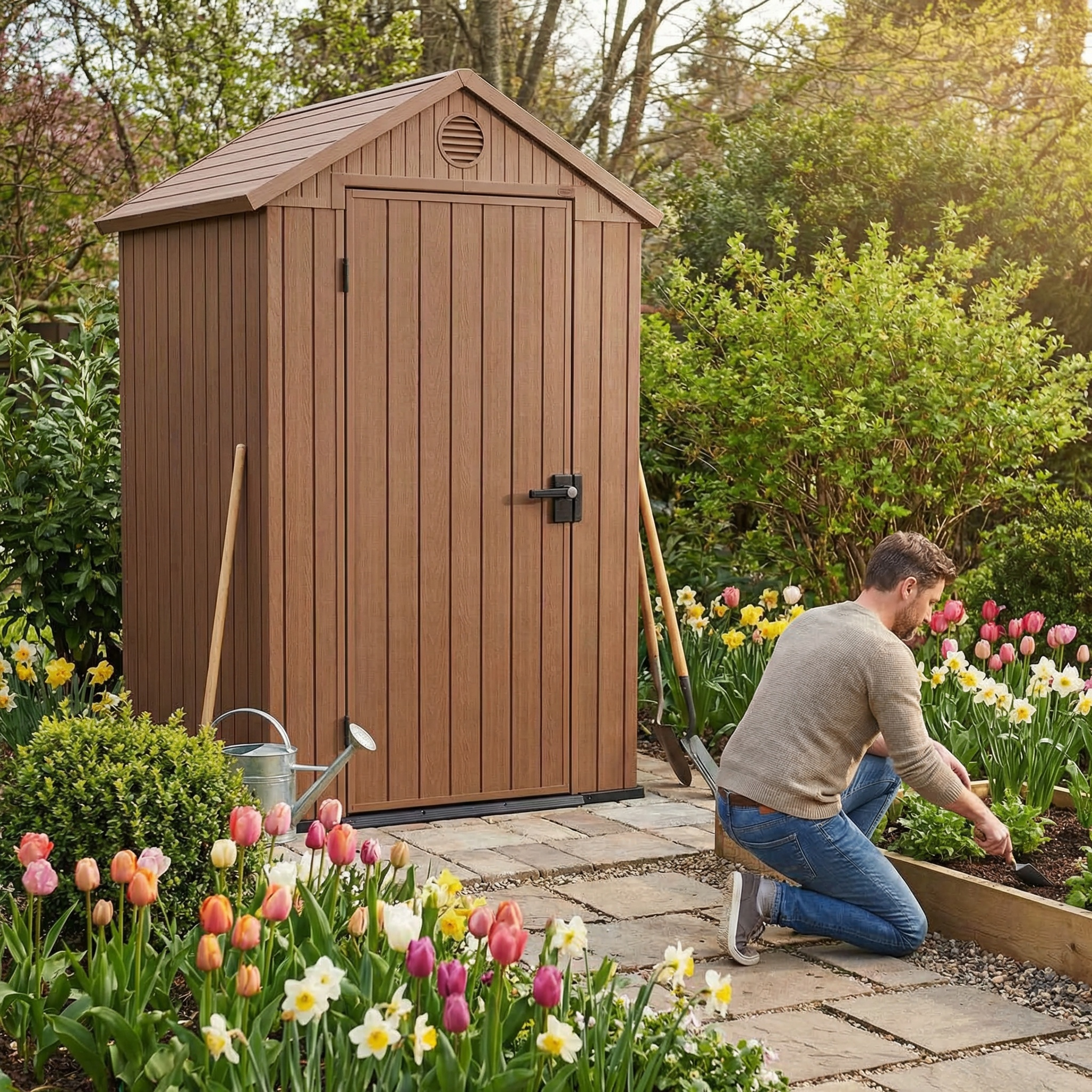 Fabriqué en résine haute résistance, cet abri extérieur ne rouille pas, ne pourrit pas et ne nécessite aucun traitement. Il protège efficacement vos outils, accessoires ou mobilier extérieur contre la pluie, l’humidité et le soleil, tout en gardant le contenu au sec toute l’année.