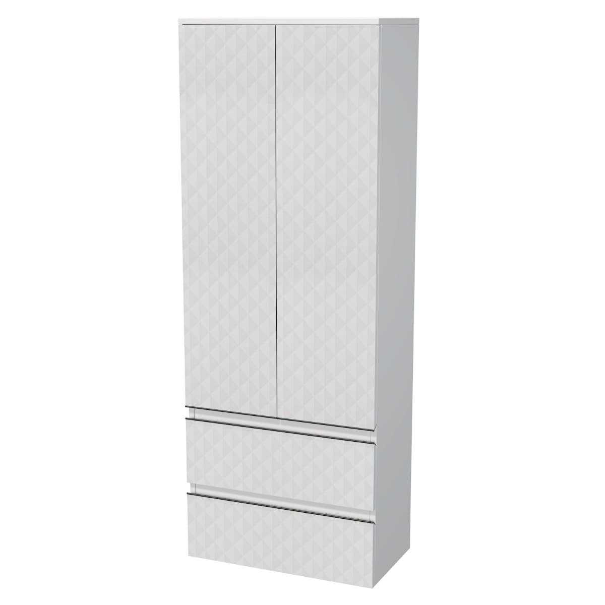 Cube Way 60x163x33 cm armoire de salle de bain suspendue haute avec 2 tiroirs, décor pyramidal 3D, blanc mat (CUBE3DV602D2ZBP)