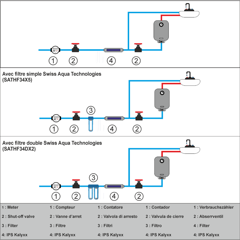 Caractéristiques de l'adoucisseur d'eau Anticalcaire Antibactérien innovant IPS Kalyxx BlueLine G1/2 " femelle Swiss Aqua Technologies (IPSKXBG12) :