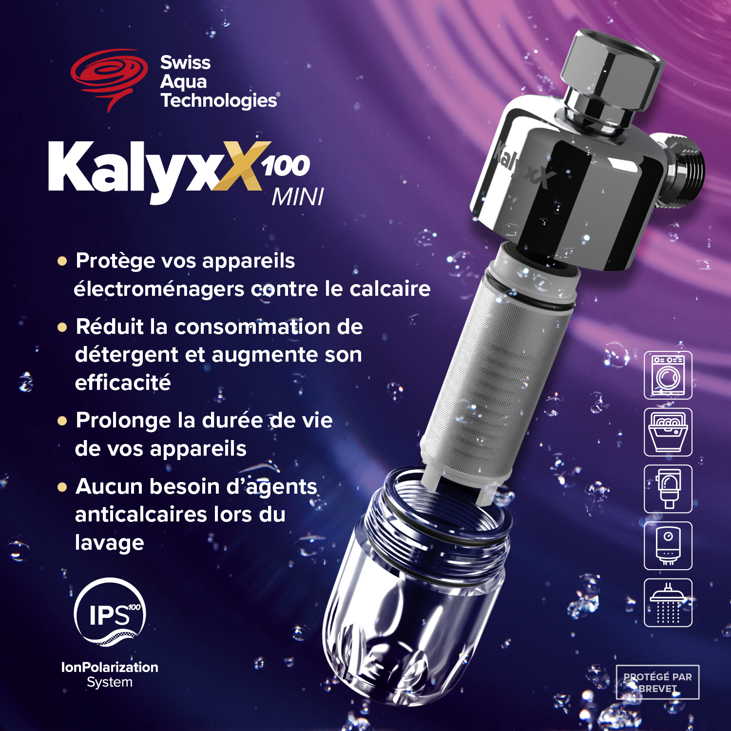 Grâce à la technologies brevetée de Polarisation Galvanique Turbulente (TGP) combinée à un système magnétique avancé, l'IPS 100 Kalyxx Active offre une efficacité accrue, atteignant 99,99% de réduction de calcaire. Ce dispositif innovant fonctionne sans produits chimiques ni source d'énergie externe. Cette fonction antibactérienne, couplée à une efficacité anticalcaire améliorée, en fait une solution idéale pour des milieux nécessitant une eau de haute qualité sanitaire.