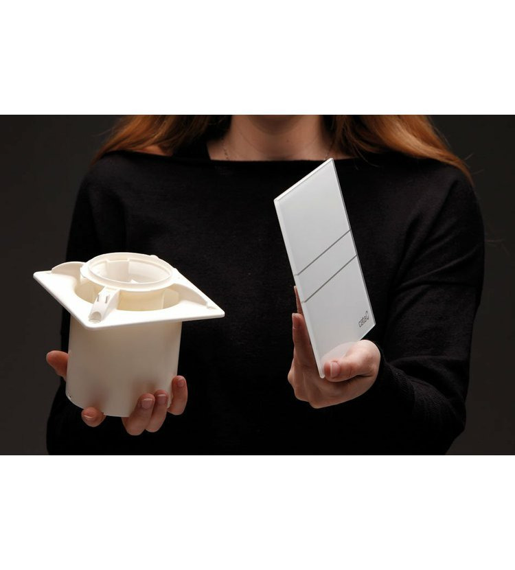 L'aérateur extracteur d'air E-100 GTH peut fonctionner à deux vitesses différentes : en continu à une vitesse inférieure toute la journée ou aère la pièce si nécessaire, à pleine vitesse. A l'initiative du capteur d'humidité intégré ou d'un interrupteur externe, la vitesse est augmentée et automatiquement réduite après ventilation, contrôlée par un microprocesseur.