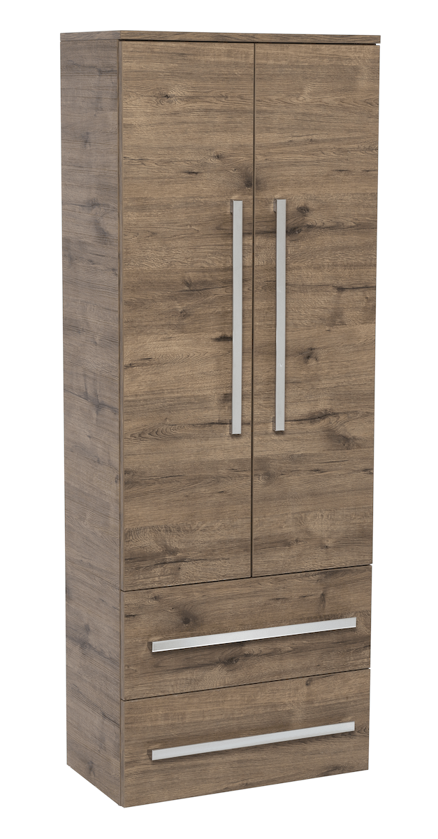 Swiss Aqua Technologies Cube Way 60x163x33 cm armoire haute de salle de bain suspendue 2 tiroirs, 2 portes, décoration chêne Wellington (CUBE3CHV60DW)