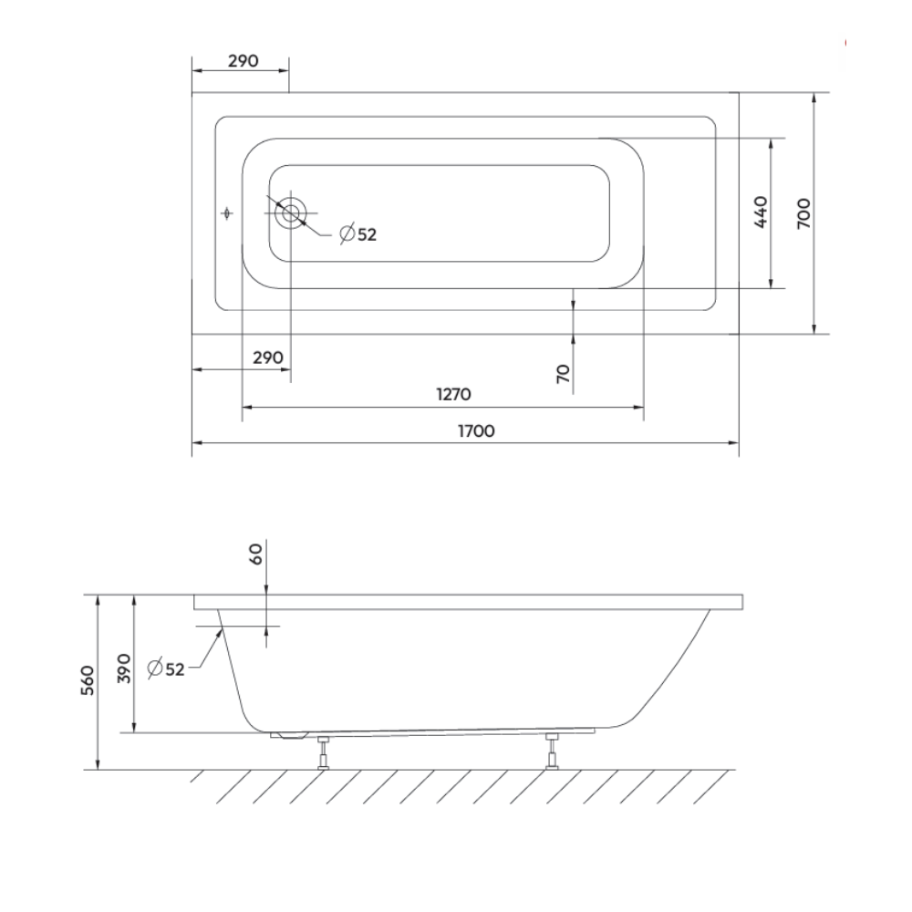 Aurum 170x70 cm baignoire rectangulaire en acrylique, orientation gauche et droite, sans pieds, blanc (SATVAUR170) :