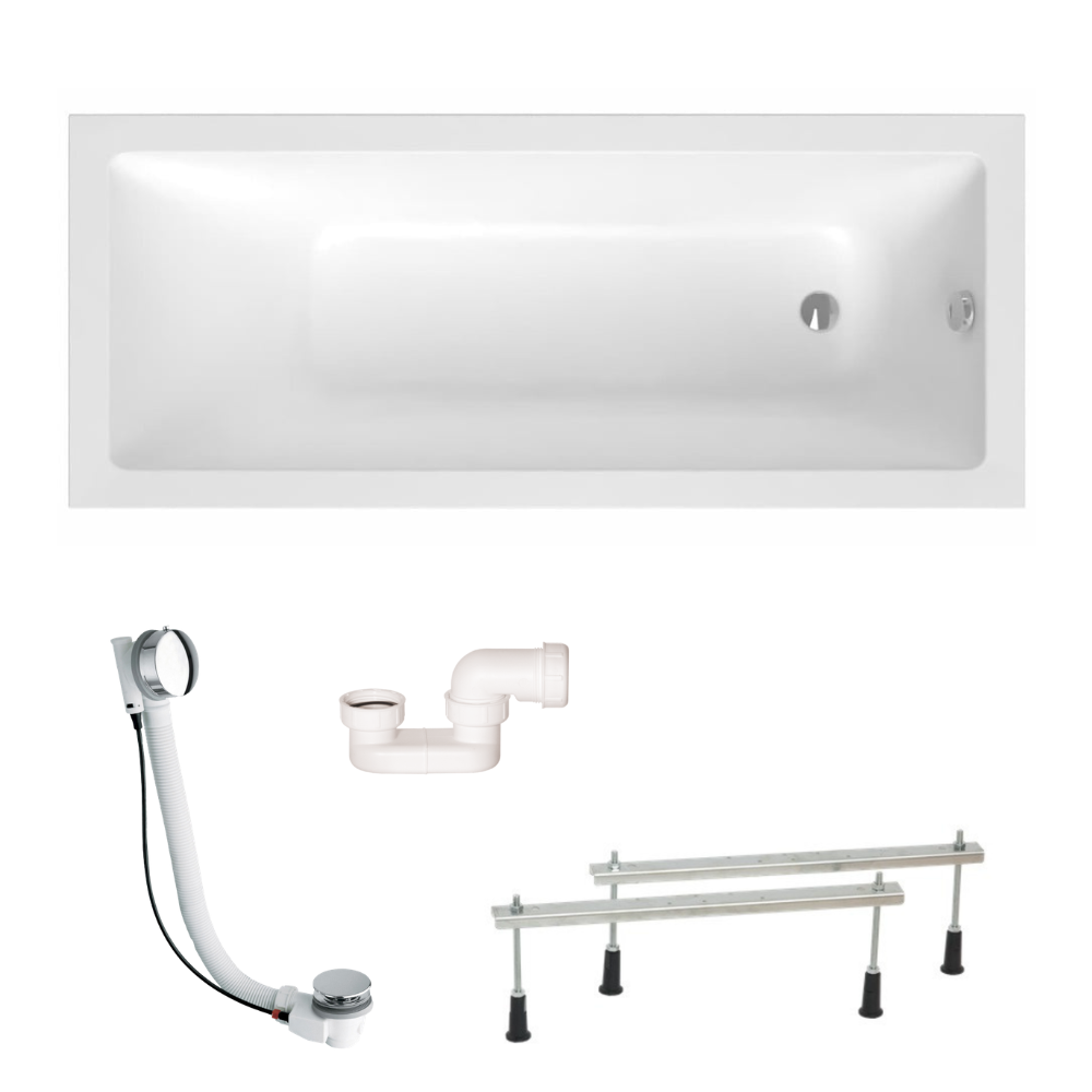 Swiss Aqua Technologies Aurum 170x70 cm baignoire rectangulaire en acrylique, gauche et droite, avec pieds + vidage + siphon, blanc (SATVAUR170-SET)