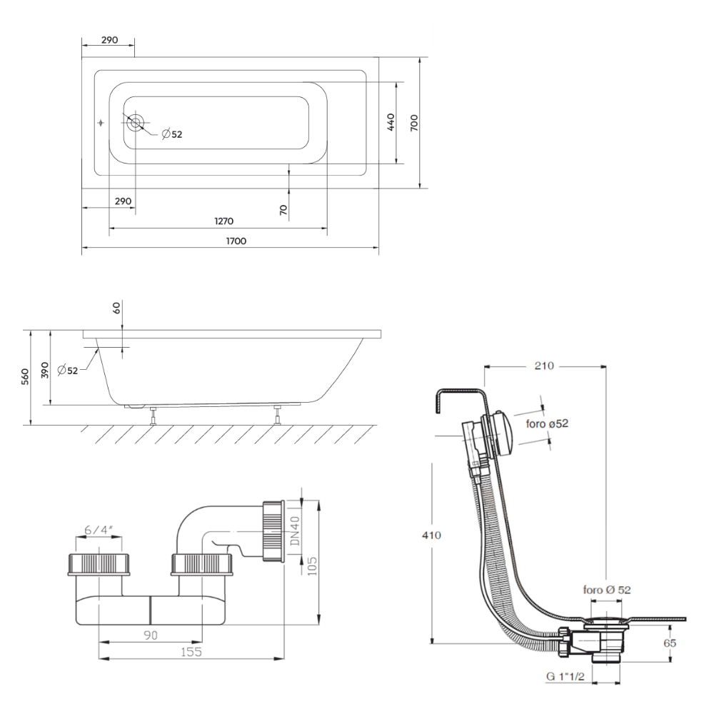 Siphon de baignoire MULTI 6/4x40mm-B /mères (E719) :