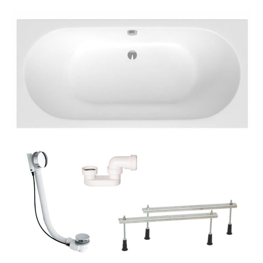 Swiss Aqua Technologies Aurum 170x80 cm baignoire rectangulaire en acrylique, gauche et droite, avec pieds + vidage + siphon, blanc (SATVINF170-SET)
