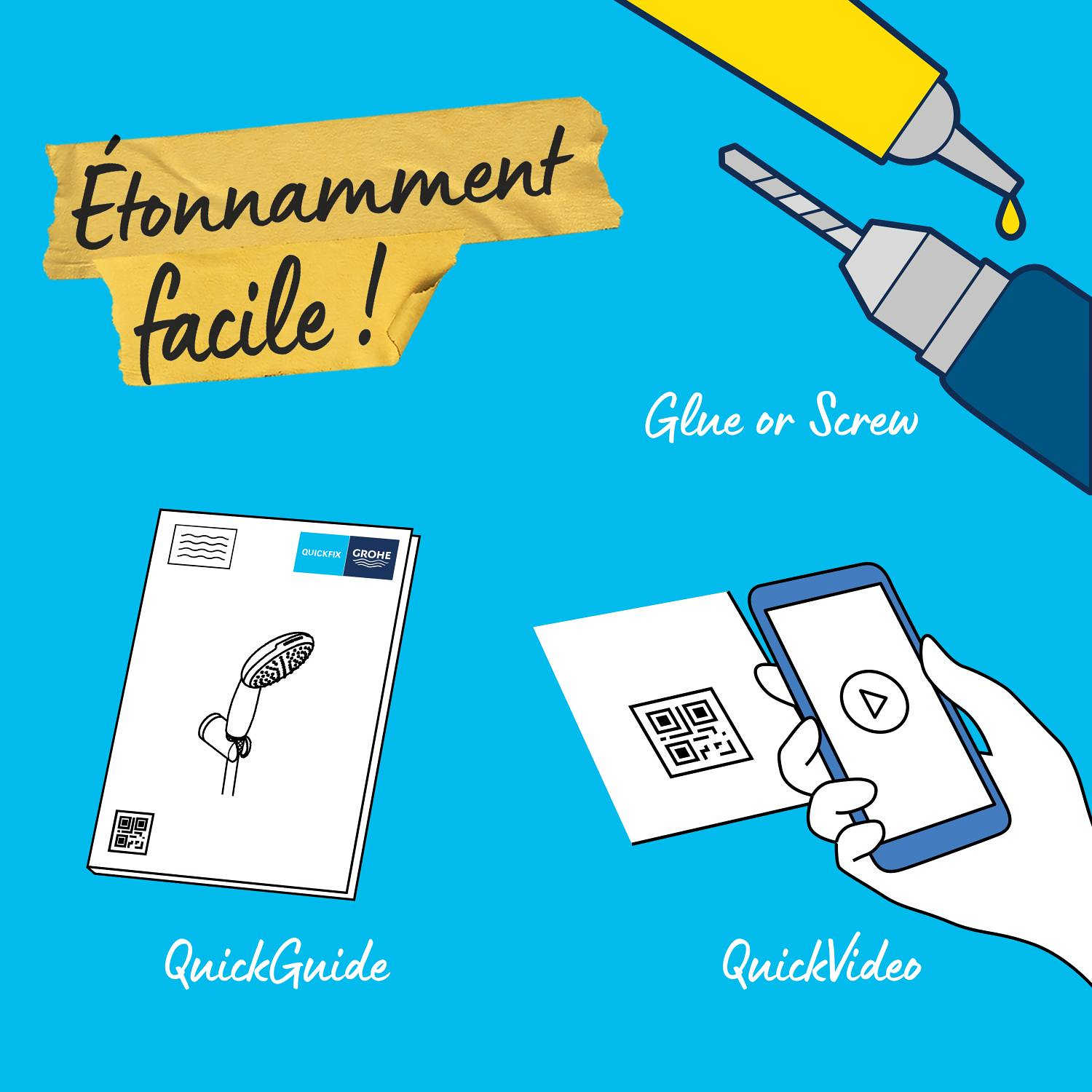 - Convient pour le vissage (vis et chevilles inclues) ou le collage (GROHE QuickGlue S 41 247 000 vendu séparément - 1 tube nécessaire)