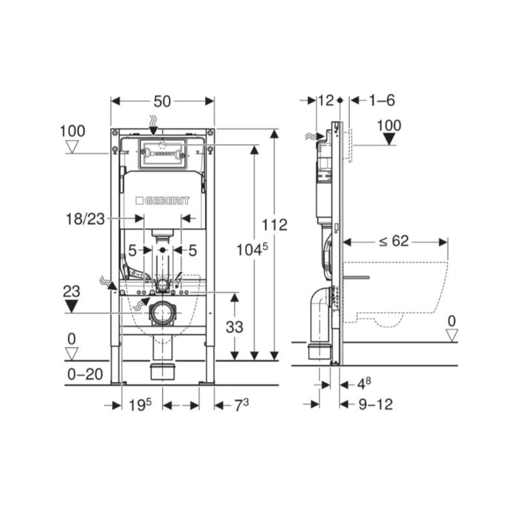 Geberit DUOFIXBasic pour toilettes suspendues, avec réservoir Delta, pour boutons de commande Delta (111.153.00.3)