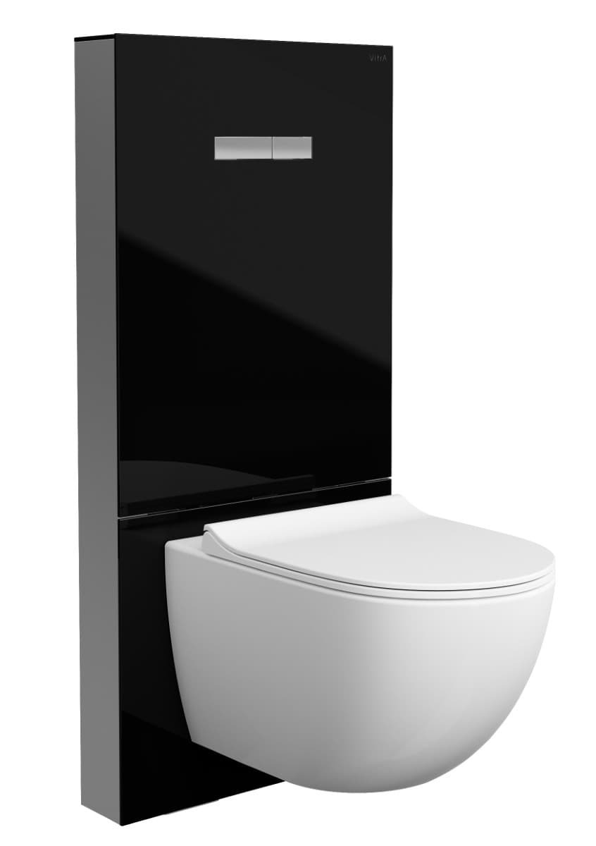 Caractéristiques du bâti-support design pour WC suspendus avec plaque de commande, verre de sécurité, Vitra Vitrus, noir (870-5761-01) :