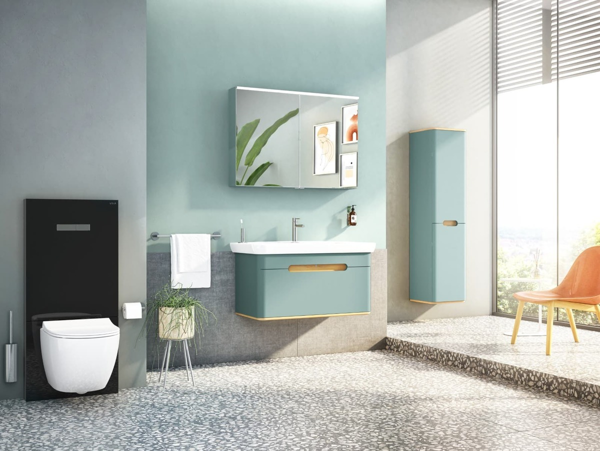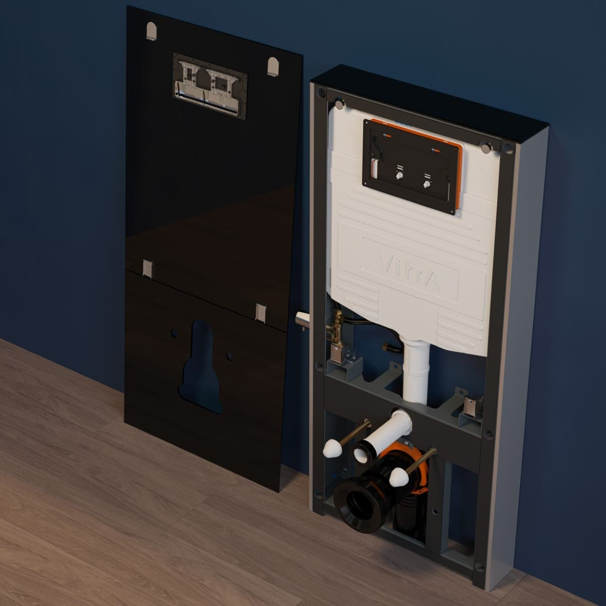 Caractéristiques du bâti-support design pour WC suspendus avec plaque de commande, verre de sécurité, Vitra Vitrus, noir (870-5761-01) :
