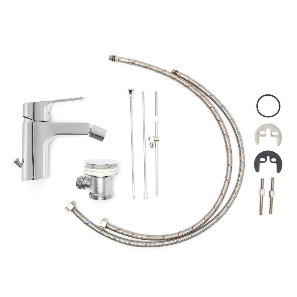 - Robinet de bidet avec bec chromé et tirette