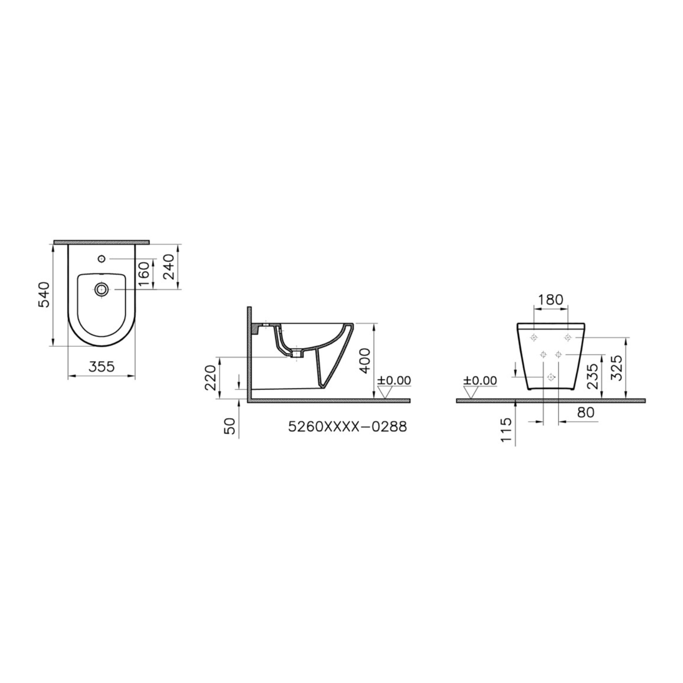 Caractéristiques du bidet suspendu et trop-plein, 35,5x54 cm, blanc (7042-003-0288)