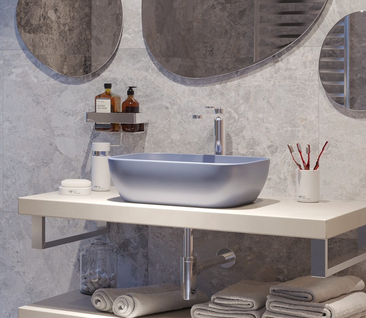Sa finition bleu profond mat s’accorde parfaitement avec plusieurs vasques à poser Infinitio, comme les réf. SATINF4532DBLM et SATINF5040DBLM. Cette teinte apporte une touche élégante et originale à la salle de bain. Elle peut également être associée à une vasque blanche pour créer un contraste moderne.
