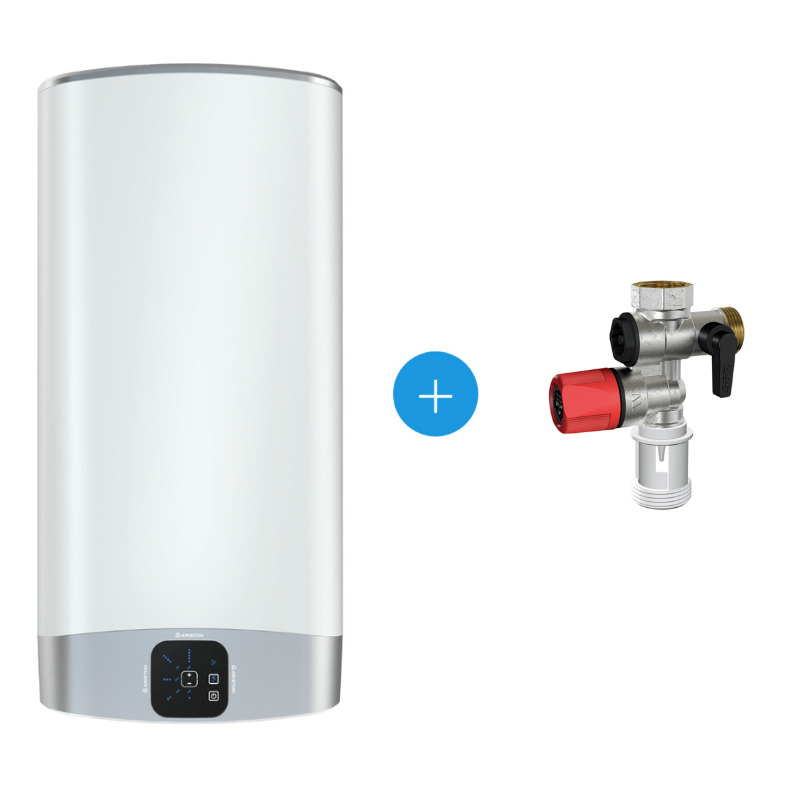 Ariston VELIS EVO Chauffe-eau électrique plat 65 L, 1500 W, Classe énergétique B, Blanc + Groupe de sécurité raccordement femelle Ø 3/4”