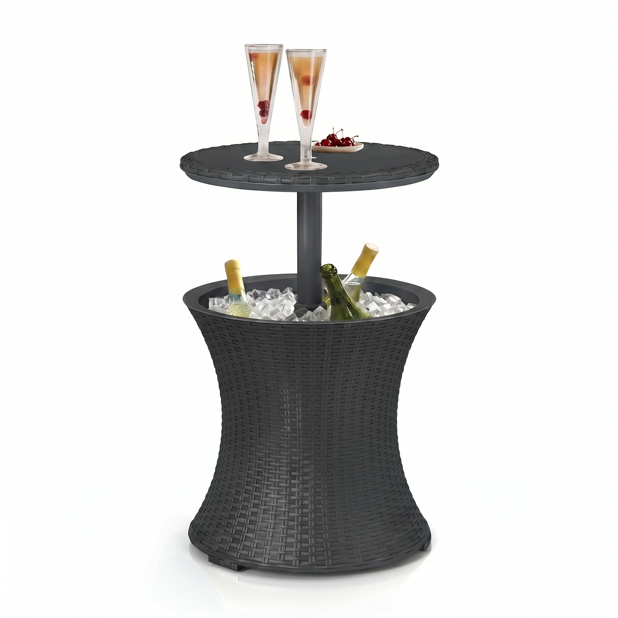 Keter Cool Bar table glacière 30 L en résine aspect rotin anthracite 57 x 50 x 50 cm avec table rétractable