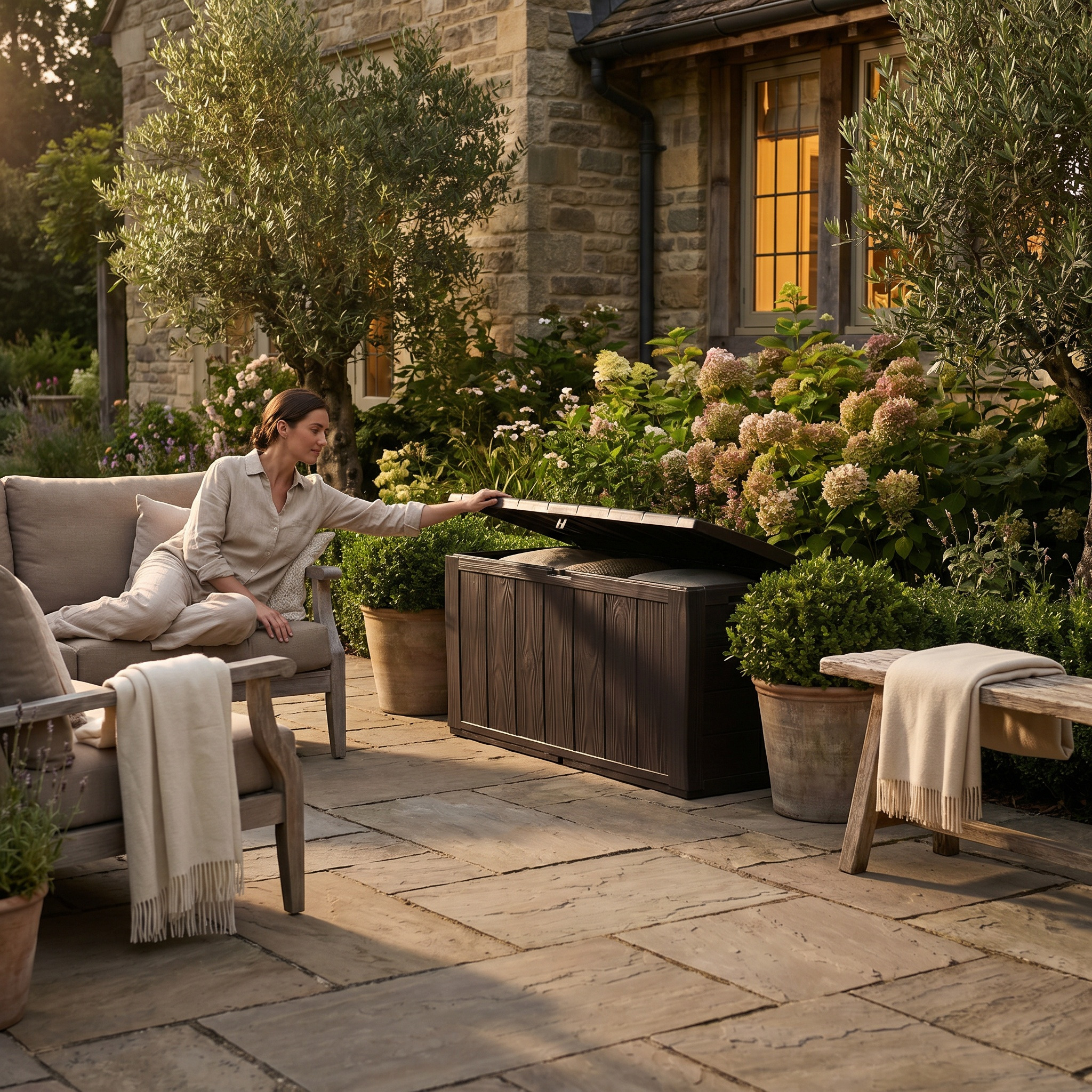 Un coffre de jardin compact, pratique et résistant pour garder vos affaires bien protégées au quotidien.