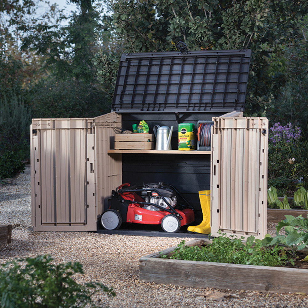Keter Store It Out Midi coffre de jardin 880 L en résine beige/marron 132 x 71,5 x 113,5 cm avec plancher (249440)