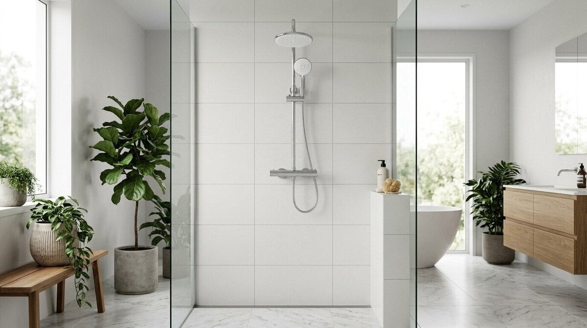 Caractéristiques de l'ensemble de douche avec mitigeur thermostatique, douche de tête, douchette à main, Swiss Aqua Technologies Basic, chrome (SATSSTKEB) :