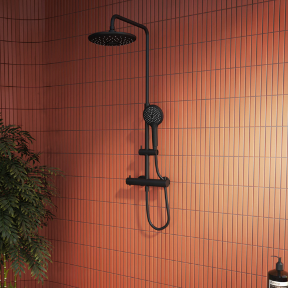 - Corps en acier inox de haute résistance contre l’humidité pour une durabilité maximale, tête de pluie, chute et pommeau en plastique noir mat