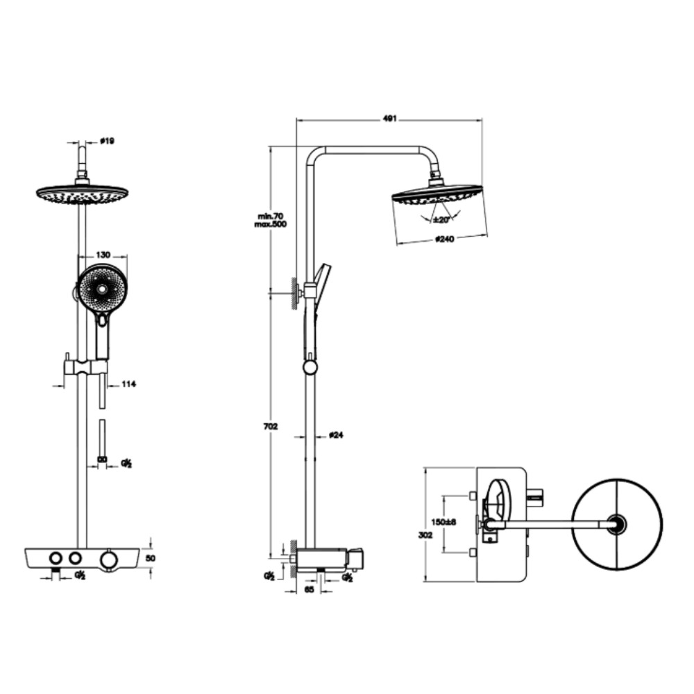 Avec son large pommeau confort de 130 mm, une douchette multi-jets (Aquaspray, Aquamassage, Aquasoft), et sa pomme de douche à double position pluie ou massage, la colonne AQUACONTROL CHARM 240 2F permet d’adapter votre douche selon vos envies. La tige télescopique ajustable rend l'installation flexible et compatible avec toutes les configurations.