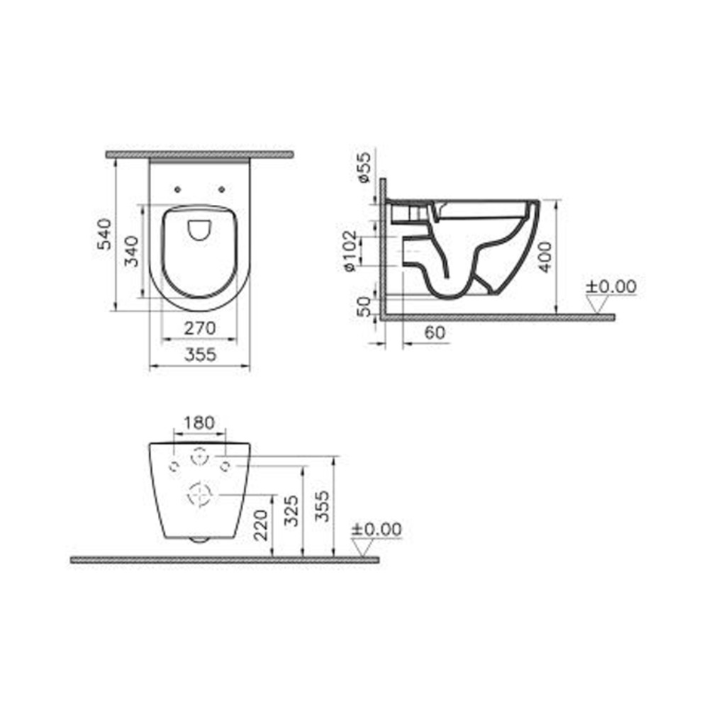 Caractéristiques de la cuvette WC suspendue sans bride avec abattant SoftClose, fixations invisibles, Vitra S60, blanc (7510-003-6319) :