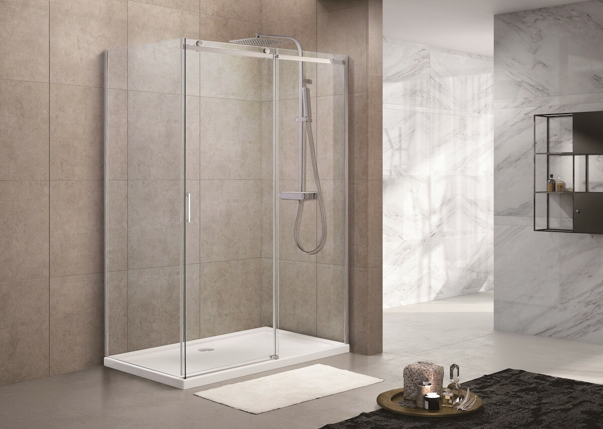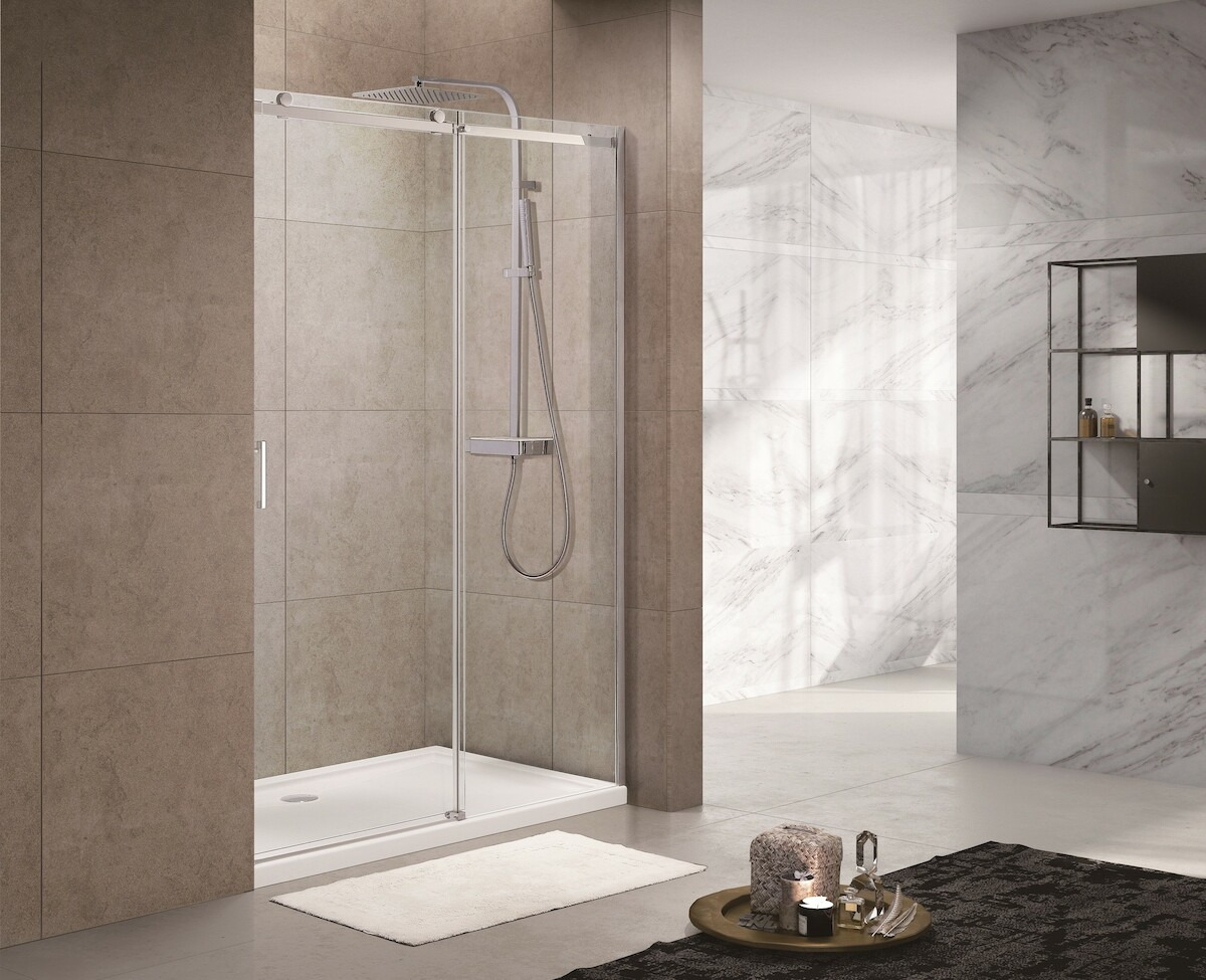 Caractéristiques de la Porte coulissante de douche verre trempé avec accessoires de montage inclus 120x200cm, Chrome, T-Linea Swiss Acqua Technologies (SIKOTLDNEW120P) :