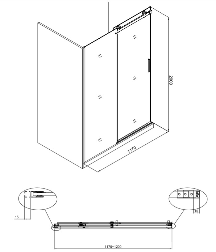 - Contenu de la livraison : 2 parois de verre + rails + 2 profilés