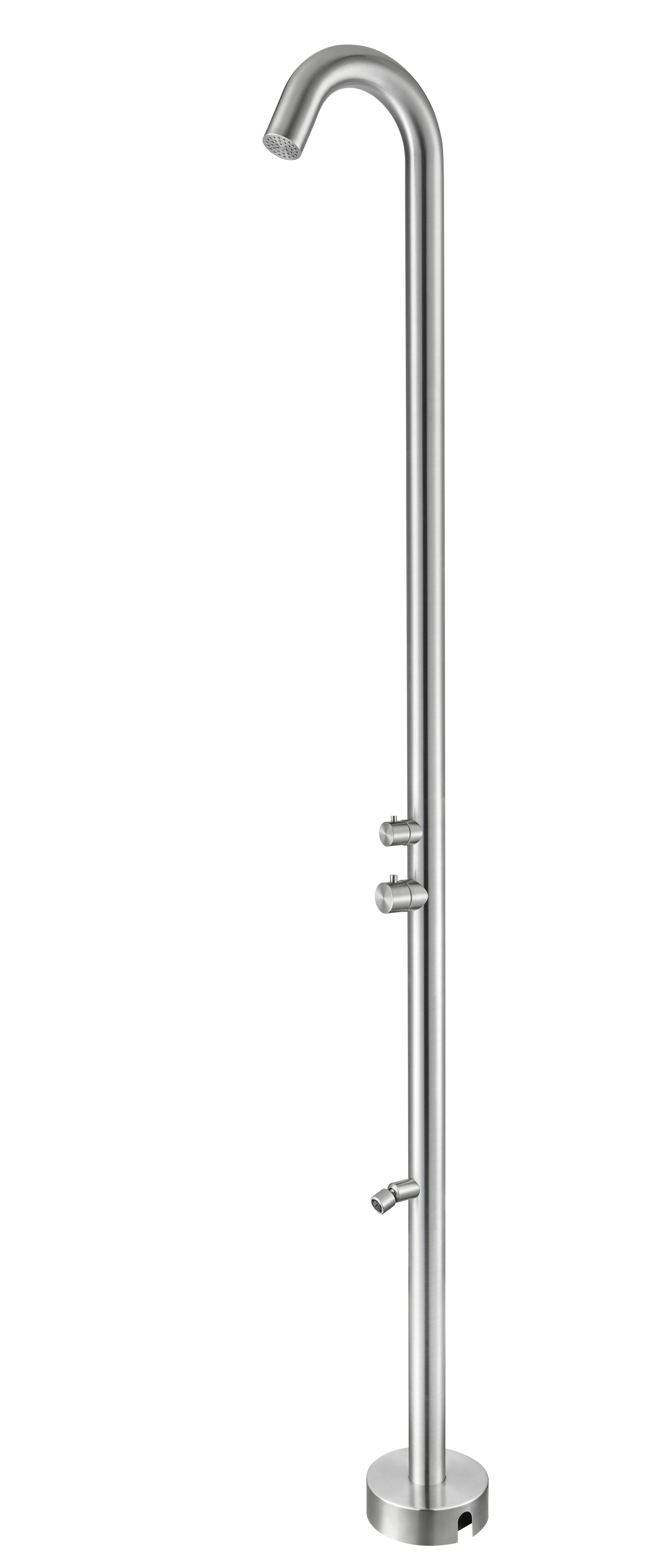 Douche extérieure en acier inoxydable 316L, eau chaude et froide, compatible tuyau d’arrosage, finition brossée (TS1002)