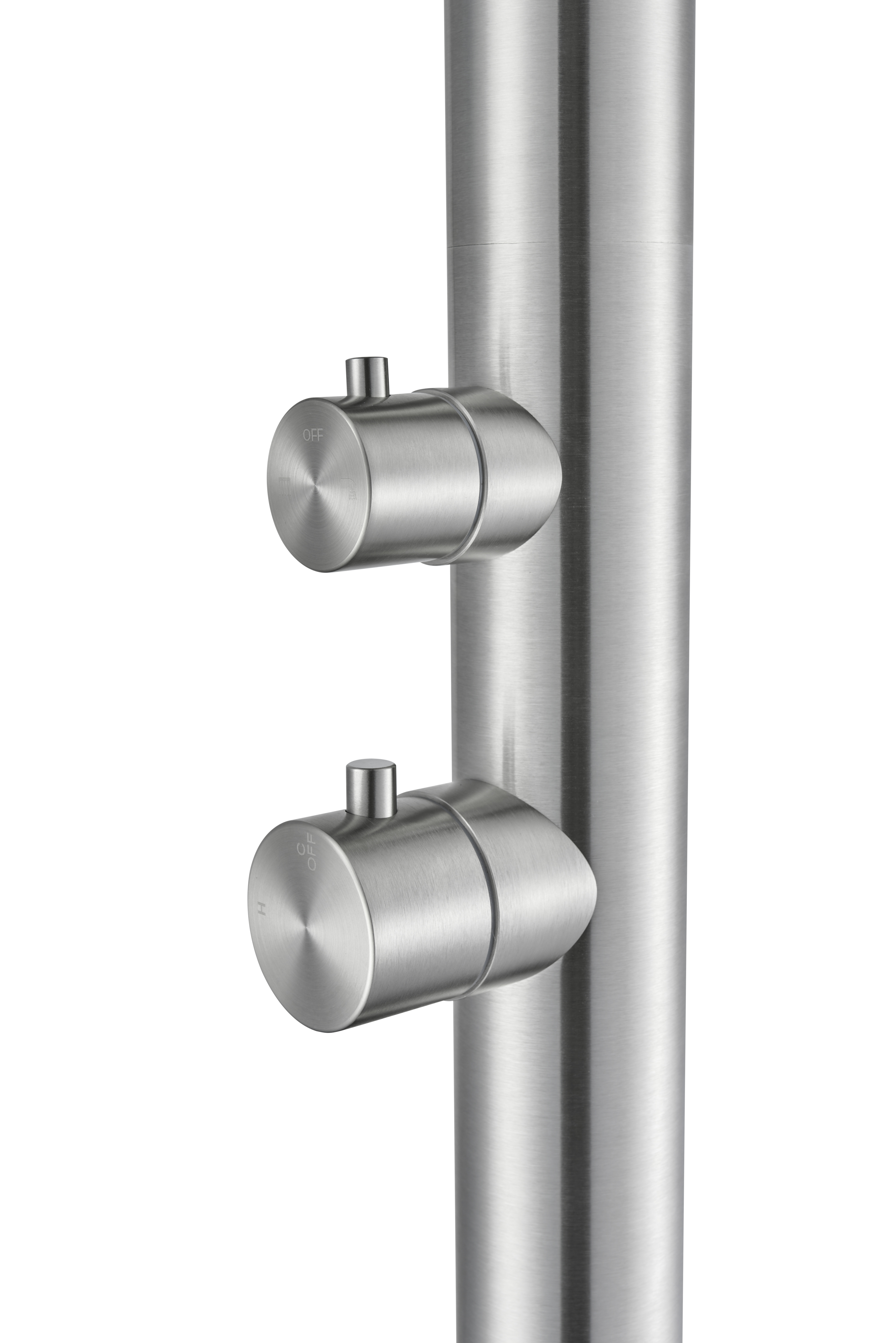 Caractéristiques de la douche extérieure en acier inoxydable 316 L, eau chaude et froide, douchette pieds, acier brossé, Naturel (TS1002) :