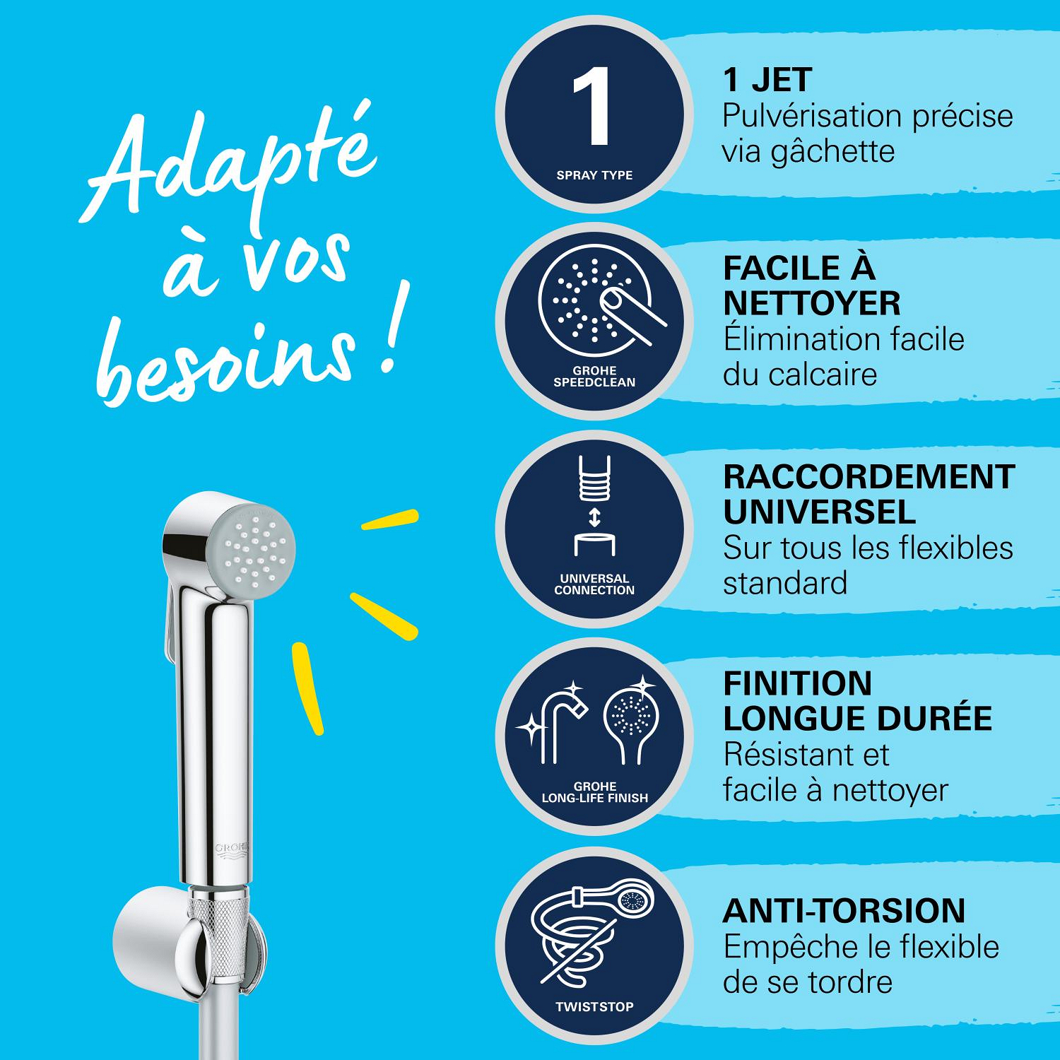 Grohe Vitalio Trigger Spray 30 Ensemble de Douche 1 jet avec support mural, Chrome (26175001)