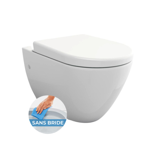 LIVEA Bello Cuvette suspendue sans bride + Abattant frein de chute, Blanc (BelloRimless-lm)