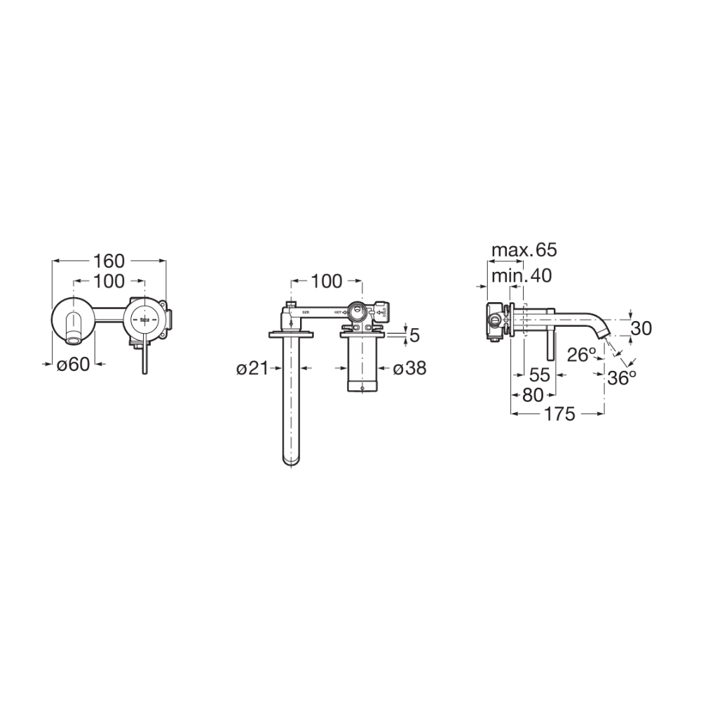Caractéristiques du mitigeur de lavabo à levier, à encastrer, sans corps d'encastrement, Roca Ona, chrome (A5A359EC00) :