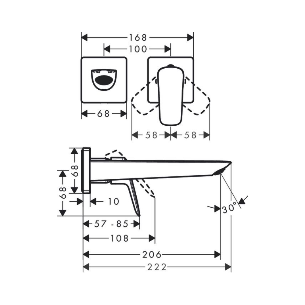 Caractéristiques du mitigeur de lavabo à levier, à encastrer, vendu sans corps d'encastrement, Hansgrohe Logis, chrome (71256000) :