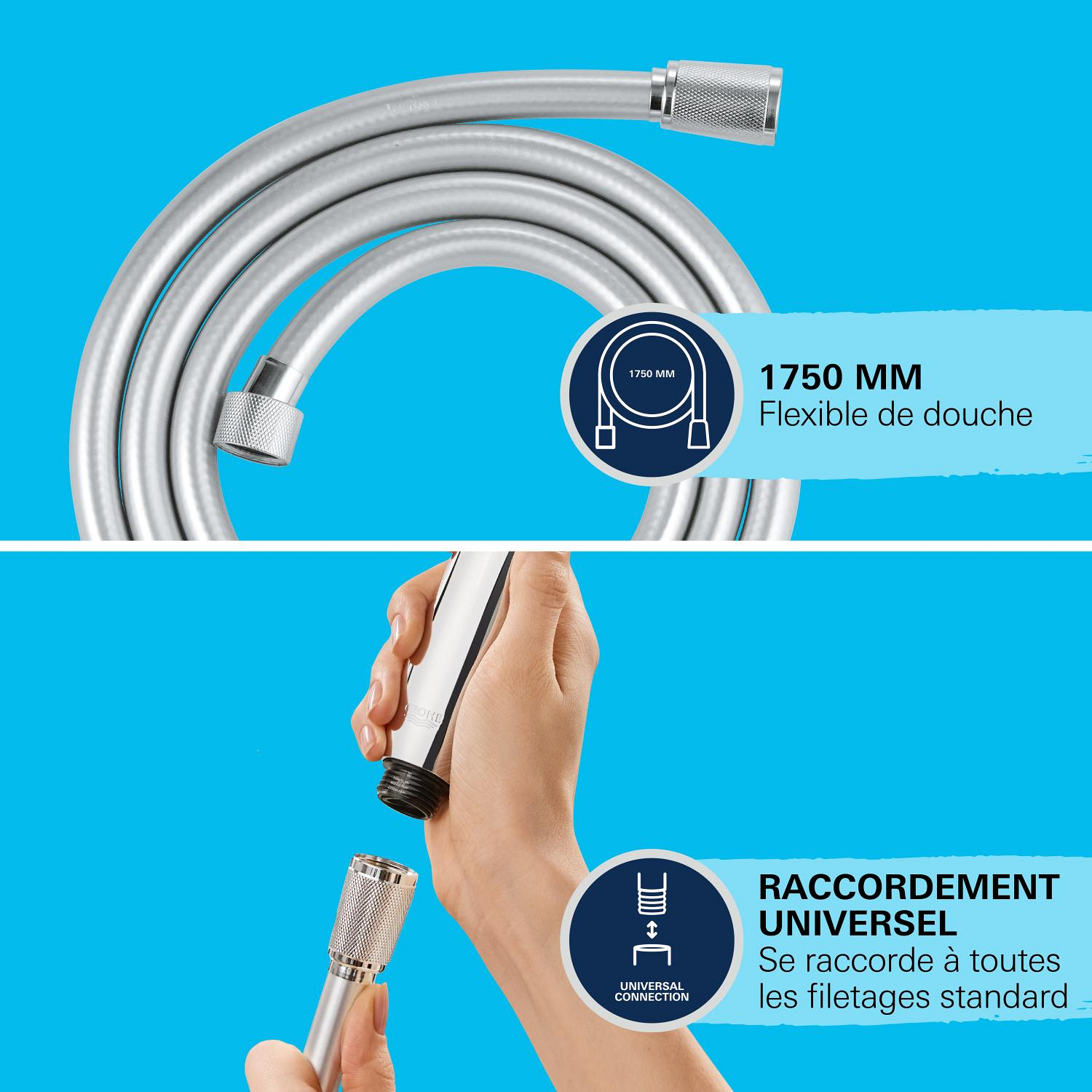 Grohe VitalioFlex Silver flexible de douche anti-torsion 175 cm, chrome (G27506001)