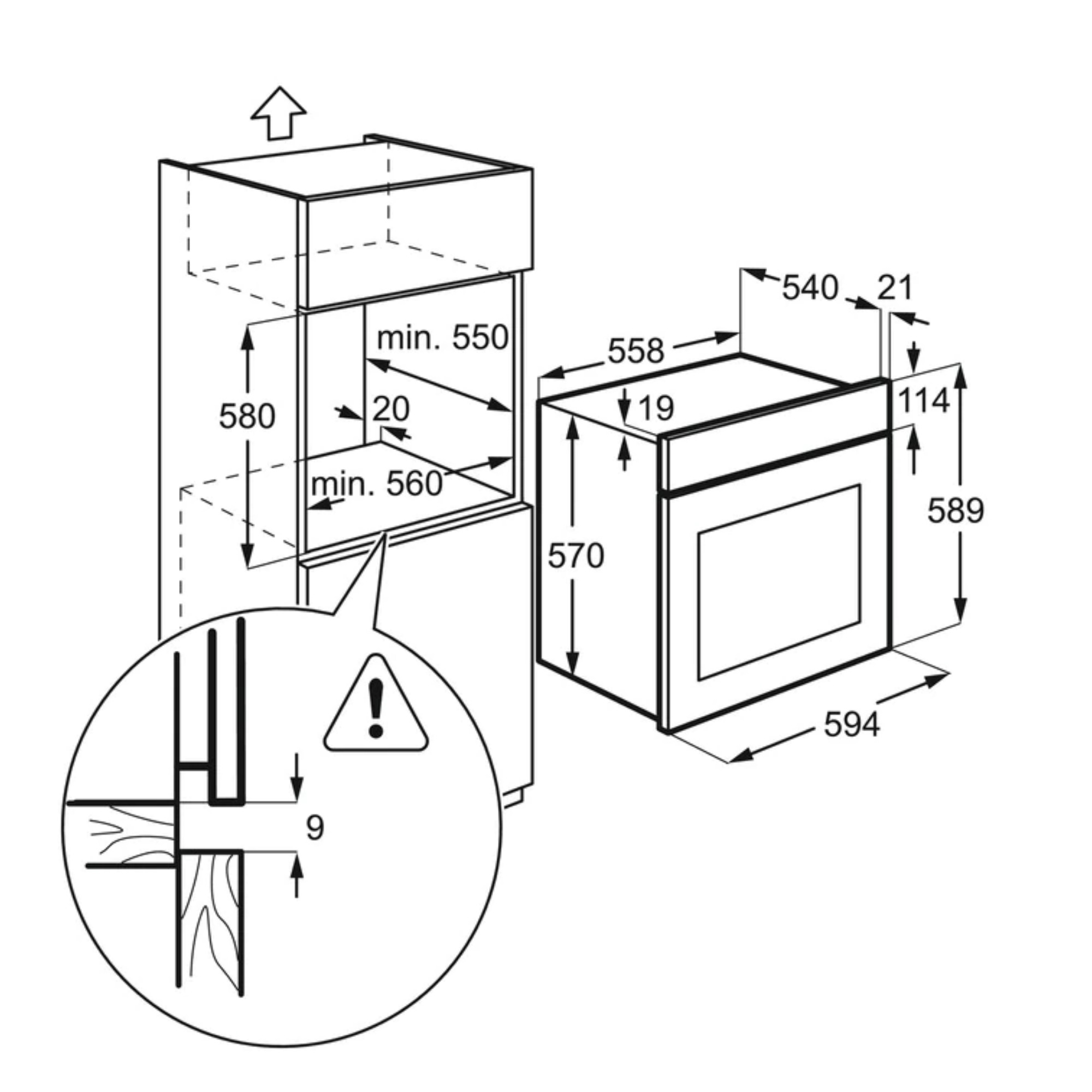- Espace d'installation HxLxP (mm) : 593 x 560 x 550