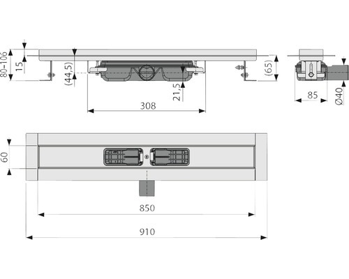 Alca Caniveau de douche avec bordure pour grille 850 (CPZLOW850)
