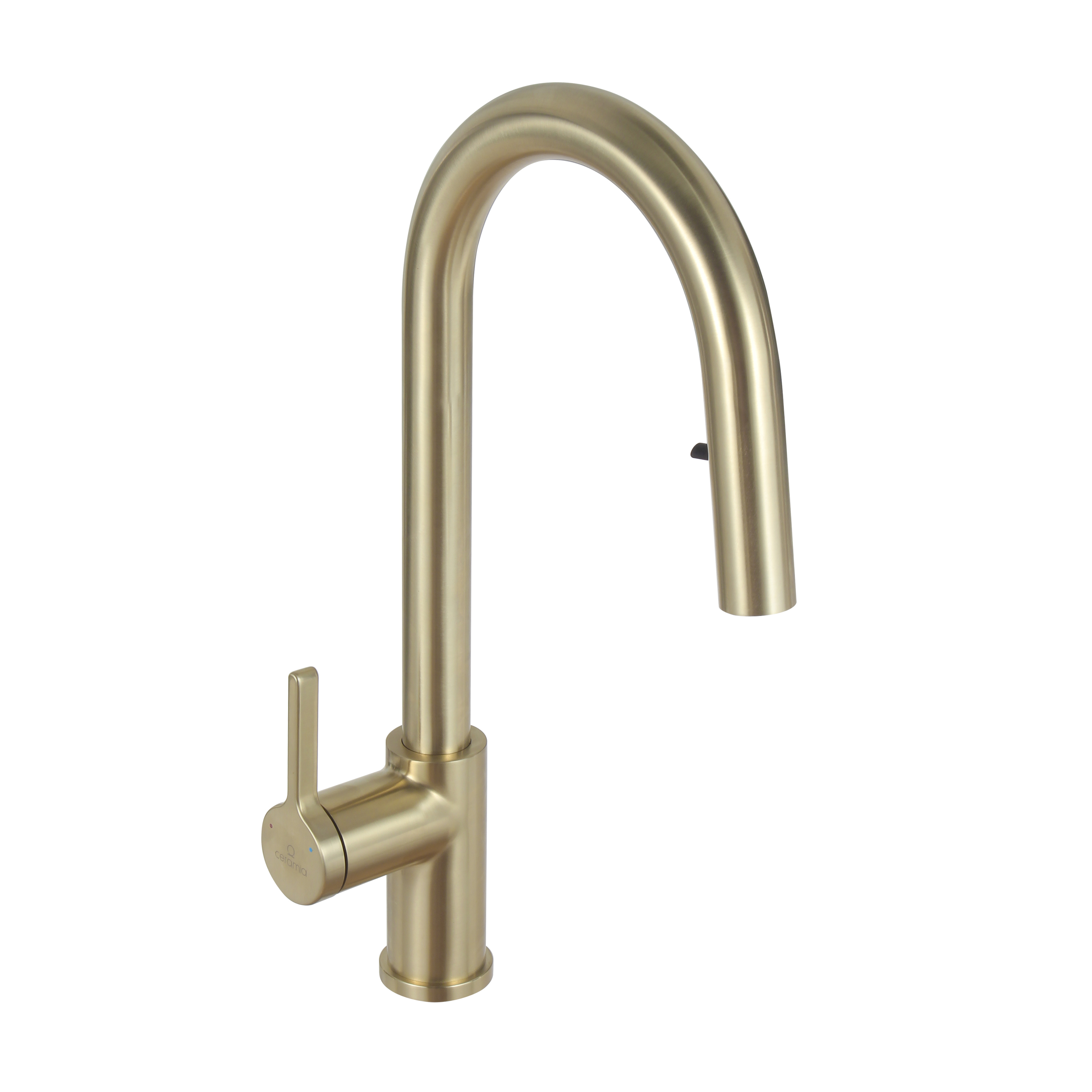 - Ceramia Timeless mitigeur d'évier à levier en acier inoxydable avec douchette extractible, monotrou, or brossé (TMLKF285BG)