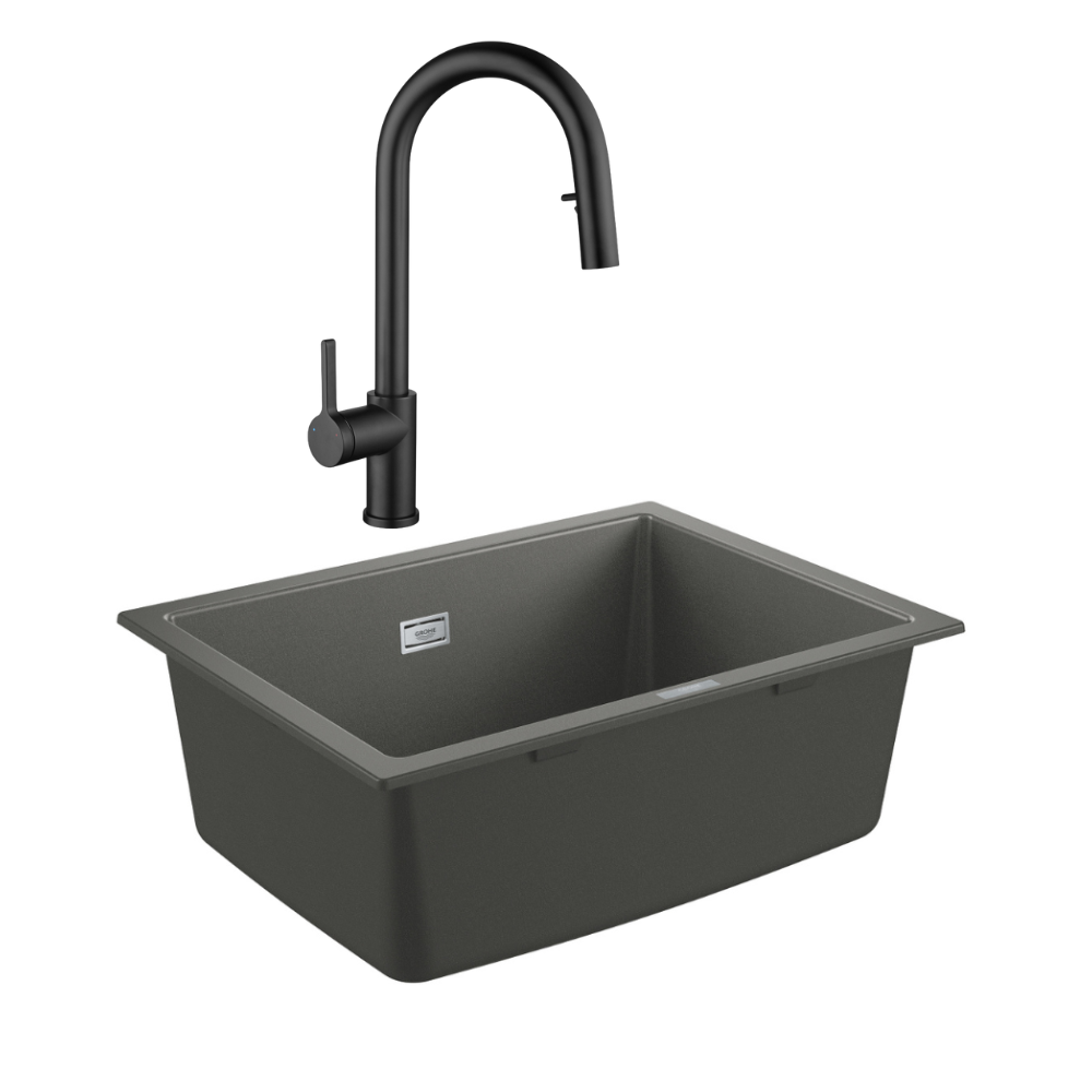 Grohe + Ceramia Grohe K700U evier composite + Ceramia Timeless mitigeur (G31655TML2BM-SET)