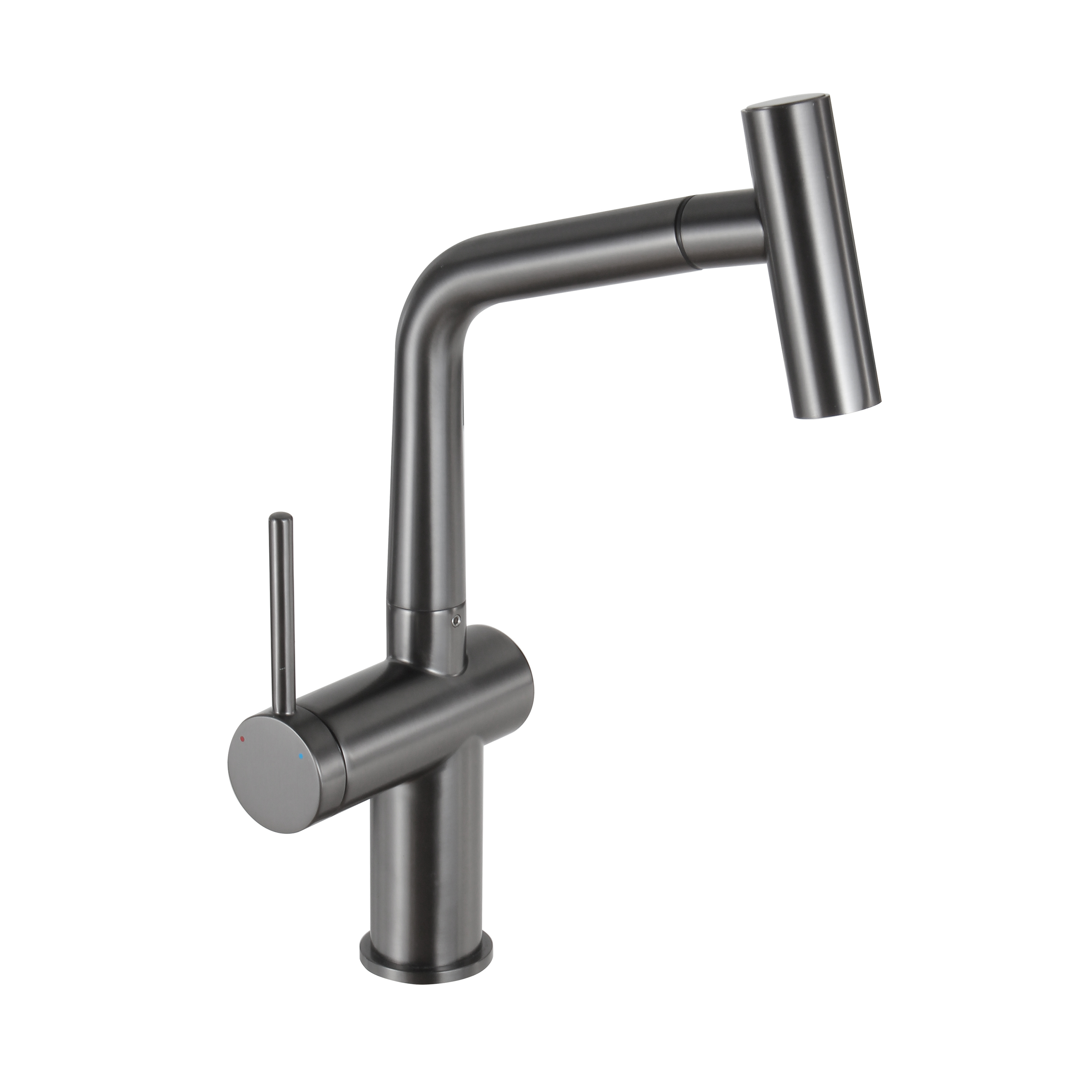 - Ceramia Timeless mitigeur d'évier à levier en acier inoxydable avec douchette extractible, monotrou, gun metal brossé (TMLKF185BGM)