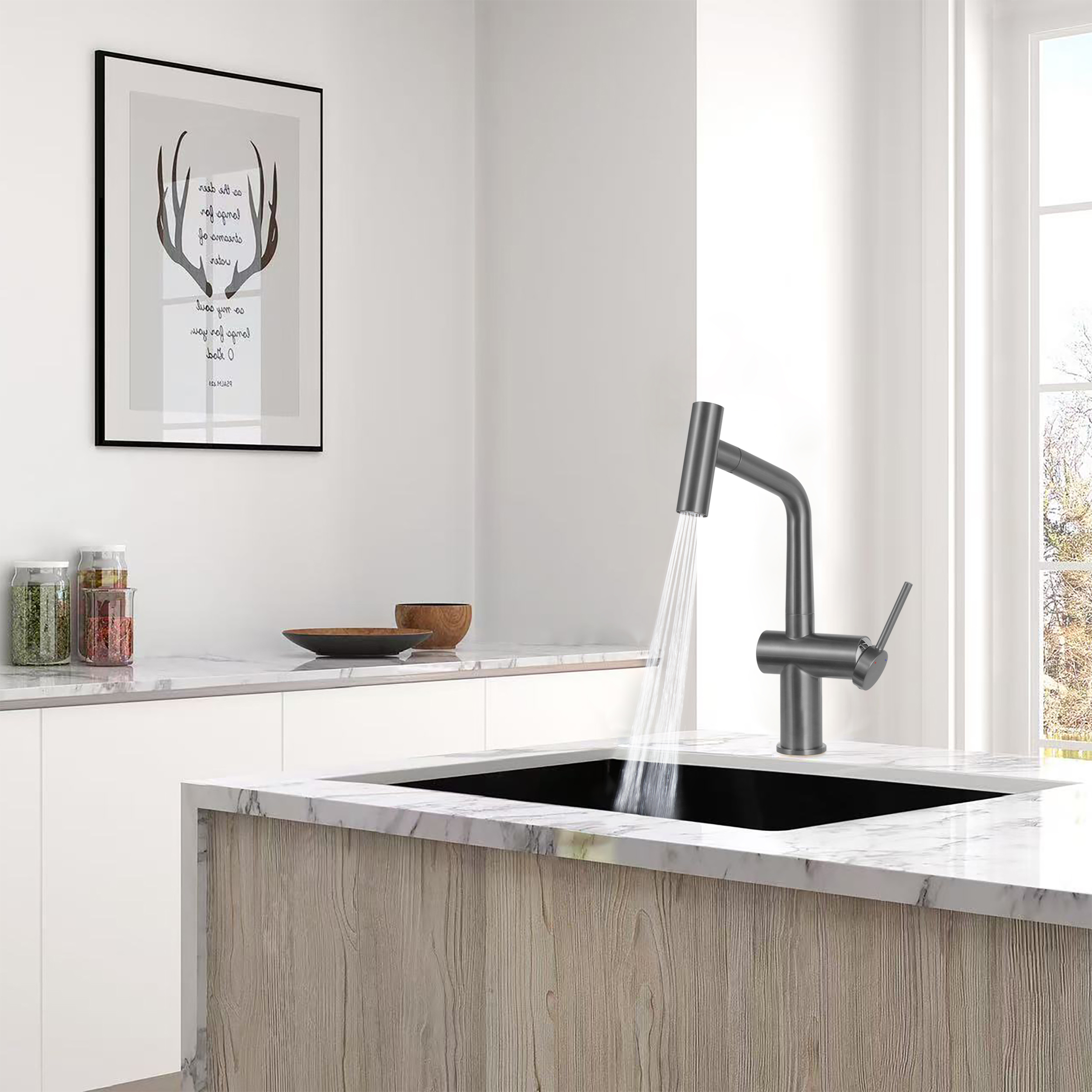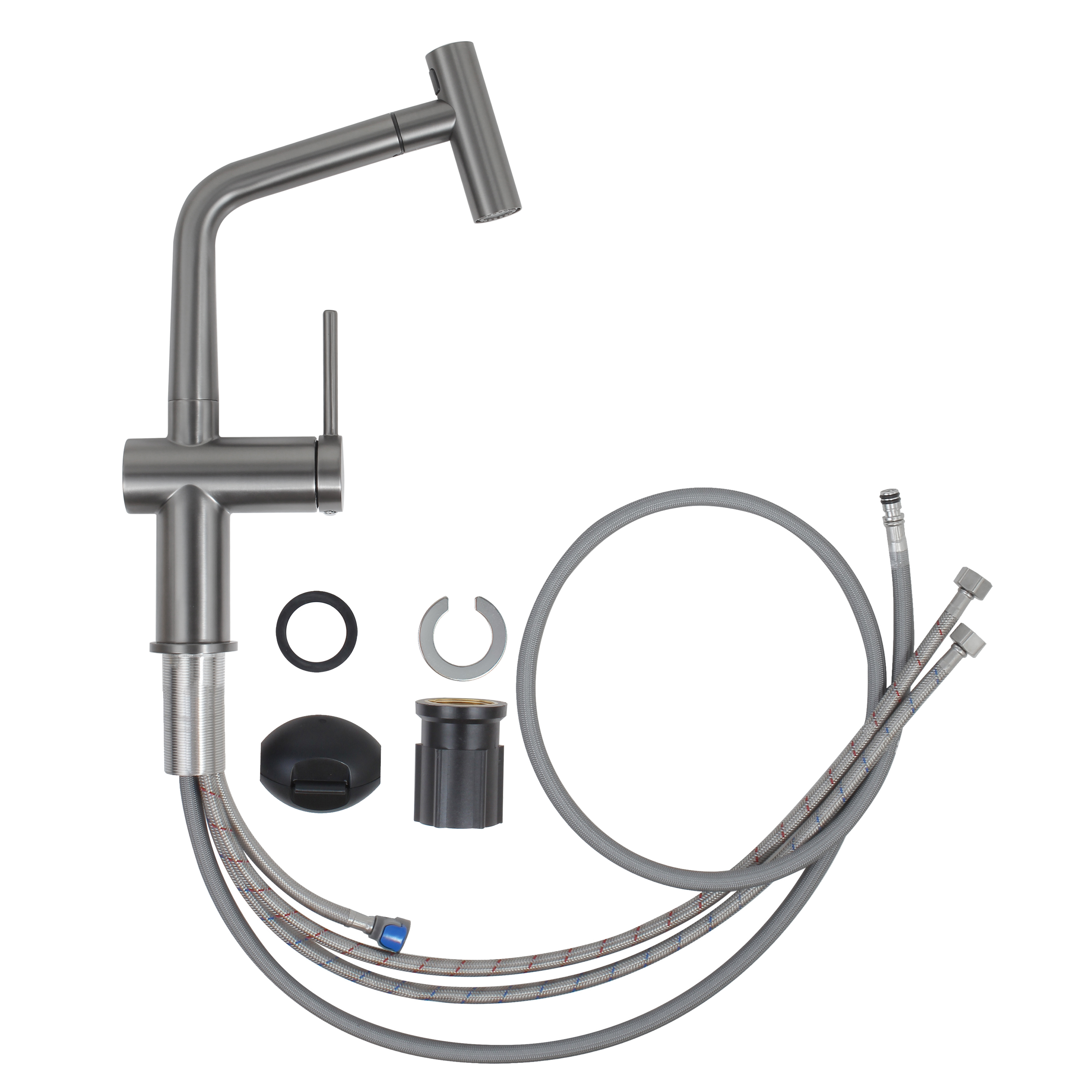 Timeless mitigeur d'évier à levier en acier inoxydable avec douchette extractible, monotrou, gun metal brossé (TMLKF185BGM) :