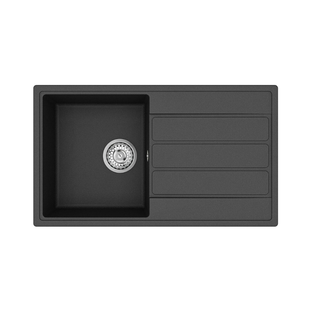 76x44 cm évier avec égouttoir réversible en Granite, à encastrer, noir (SATSINKGE3B) :