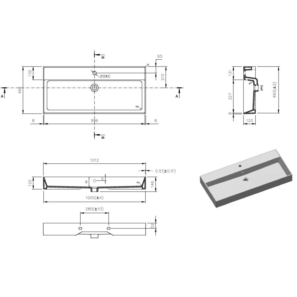 Swiss Aqua Technologies Lavabo à suspendre et à poser SAT Infinitio - 100,4x46,5 cm (SATINF10046)
