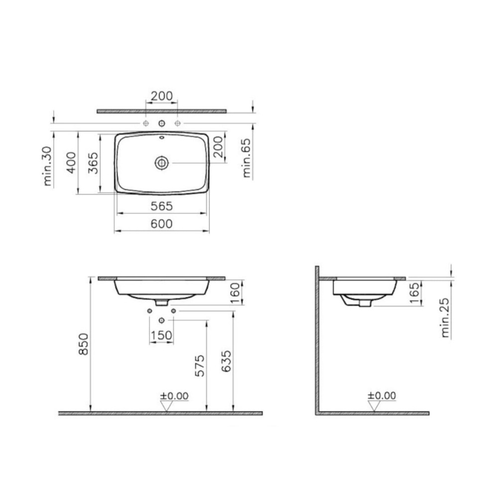 Caractéristiques du lavabo en céramique à poser sur plan 60x40x16 cm, sans trou de robinetterie, avec trop-plein, Vitra Metropole, blanc (5668-003-0012) :