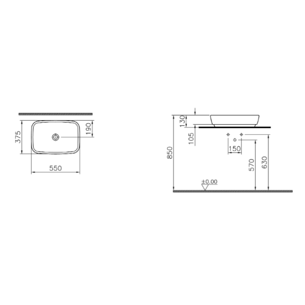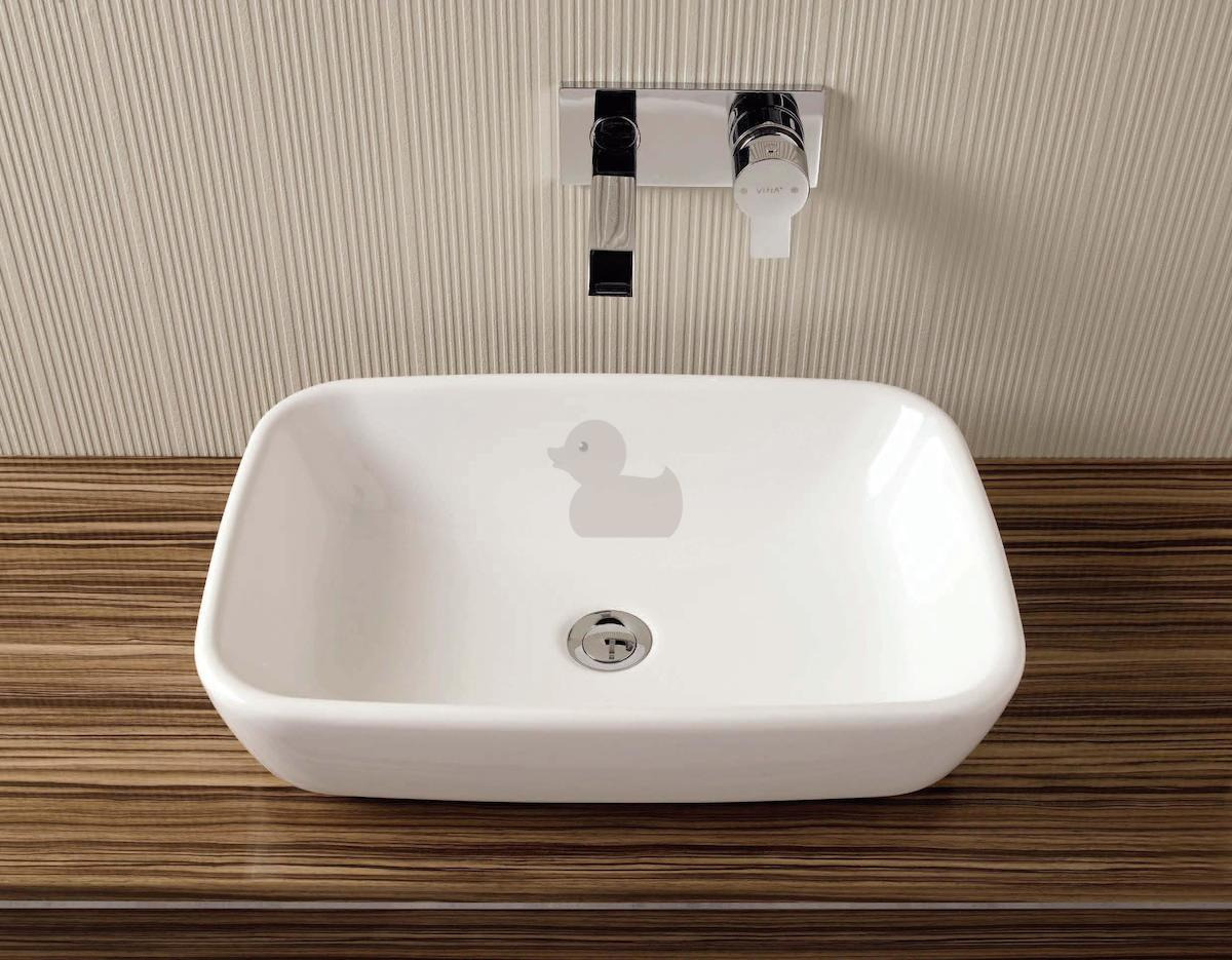 Caractéristiques du lavabo en céramique à poser sur plan 55x37,5 cm, sans trop-plein, sans trou de robinetterie, Vitra Shift, blanc (4399-003-0016) :