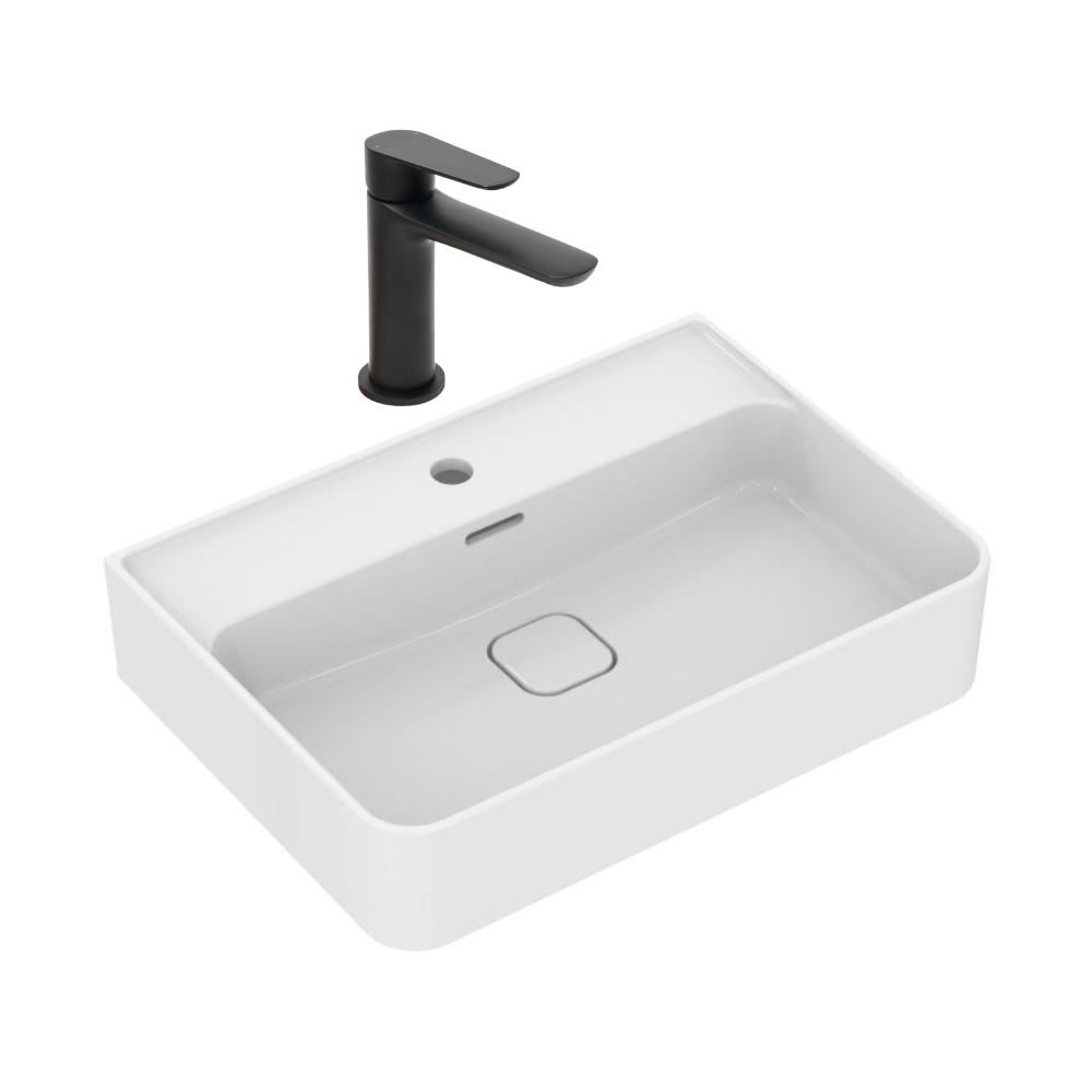 Ideal Standard Strada II lavabo 600x430 mm 1 trou + Swiss Aqua Technologies Mood mitigeur lavabo sans tirette, noir mat (T300001SATBSM271C)