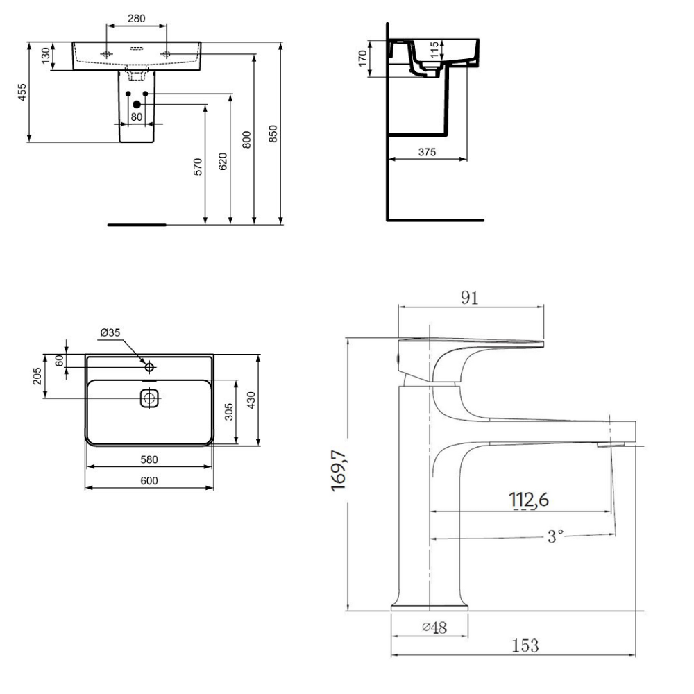- Type de produit:Lavabo + mitigeur