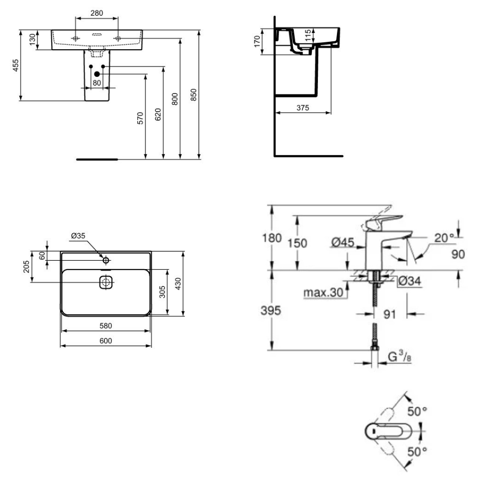 - Type de produit:Lavabo + mitigeur